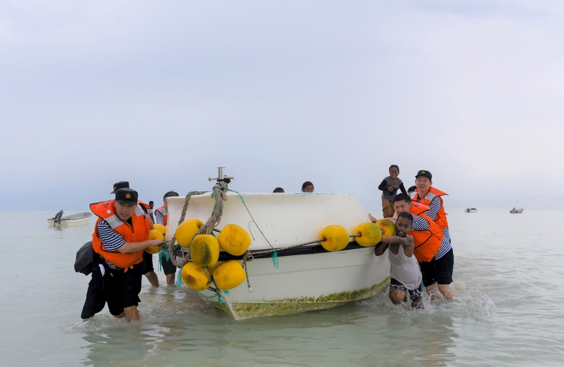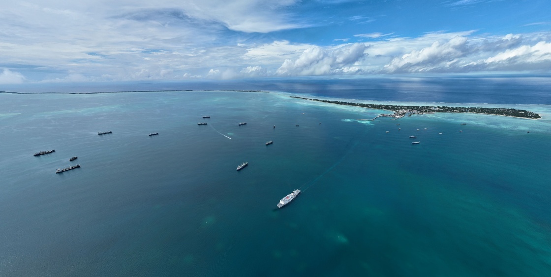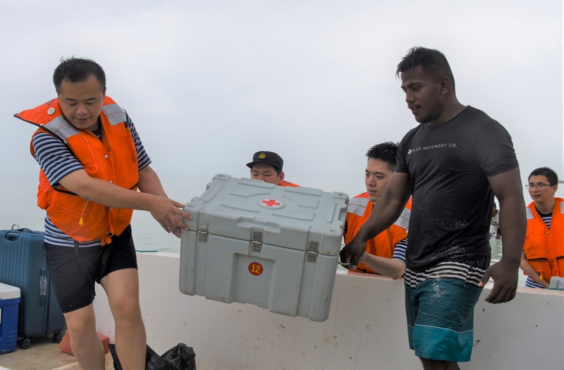 7月22日,中国舟师“和泛泛舟”号病院船驶离基里巴斯齐门塔拉瓦。新华社发(黎宇 摄)